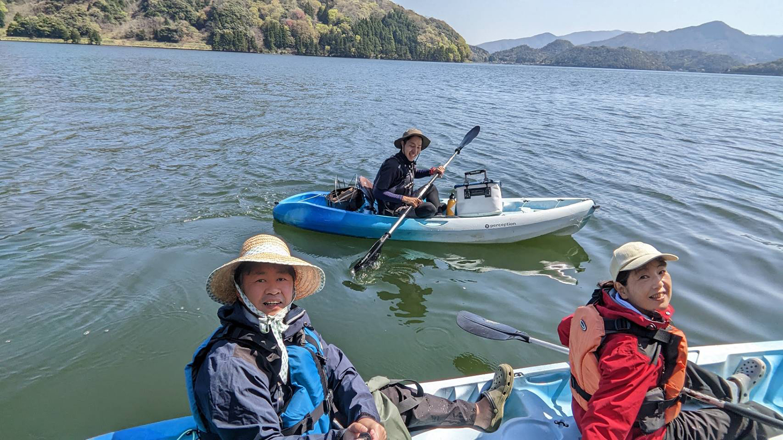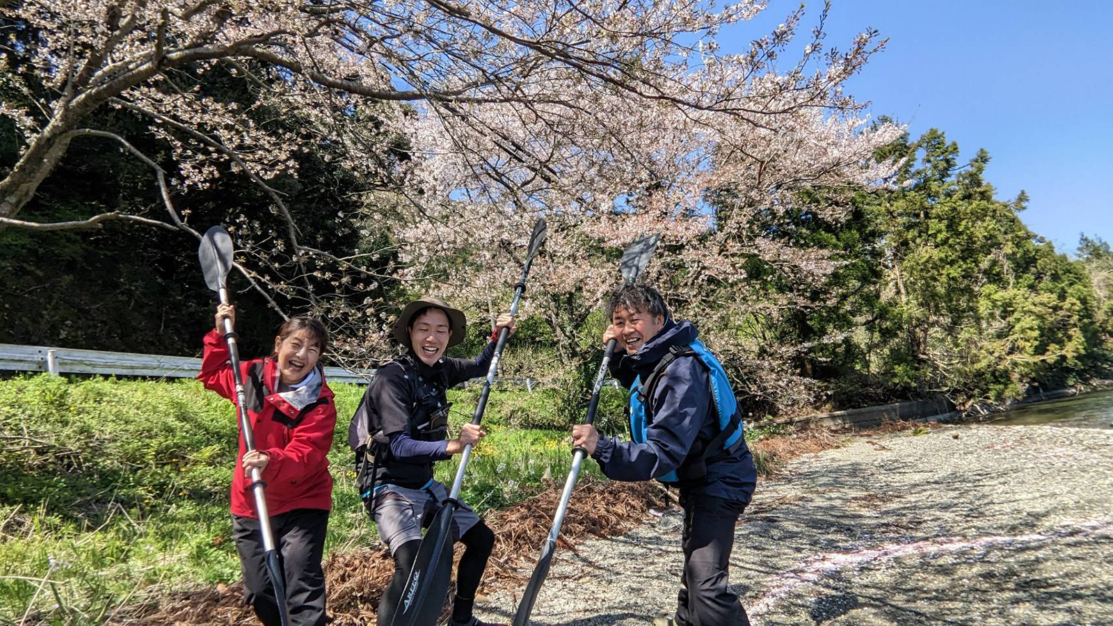 前回のツアーでも桜吹雪を楽しむことができたのですが、水月湖周辺の桜はまだつぼみもあるところもいっぱい。もうしばらくの間、桜のカヤックを楽しむことができそうです!まだまだ散らないでー!